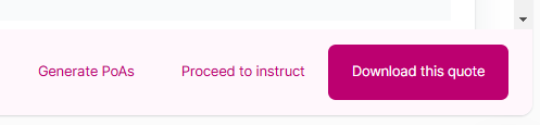 You can download or share your quote in two ways. A quote from iPify to your firm (Download this quote) or by including your fees on a quote ready to be shared with your client (Share with your client)
