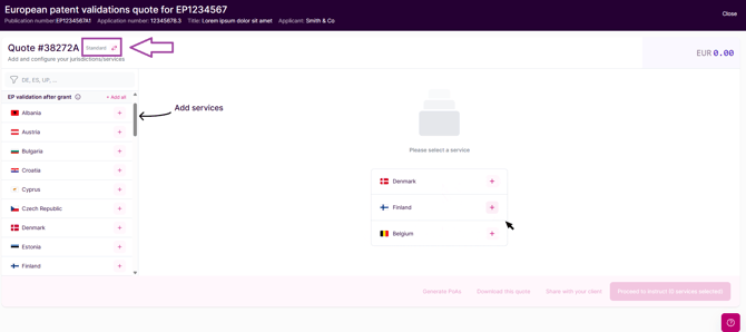 Your quote will appear on a new page where you can edit your quote by adding or removing the countries or services.