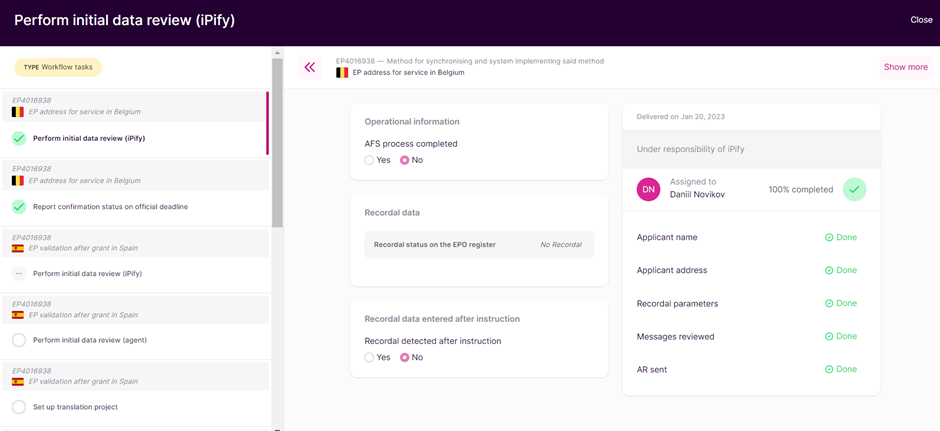 Click on the View button of each task to see a complete breakdown of the steps completed and those yet to be performed: