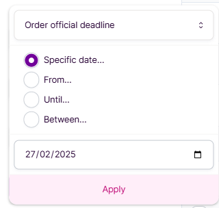 You can narrow your search by clicking on "Dates" and then selecting "Order official deadline" from the menu.