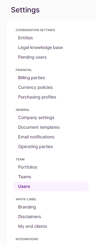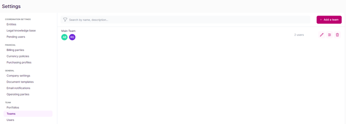 To add new users to your entity, navigate to the Team management section of the Settings.
