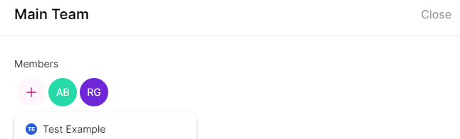 A new page opens where you can click on the "+" symbol under "Members" to add the new user to the team.
