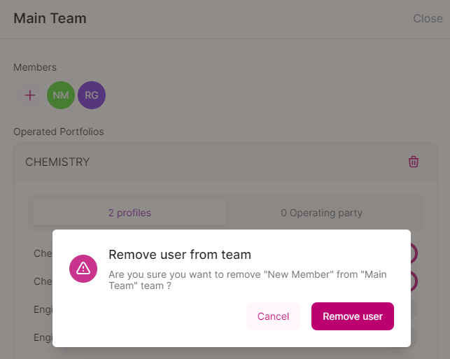 Under Settings and Team management, click the trash icon next to the user you wish to remove