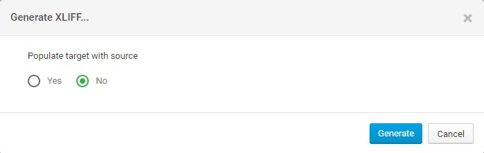 Click on the cog wheel under "Offline translation" to generate the .xlf file.