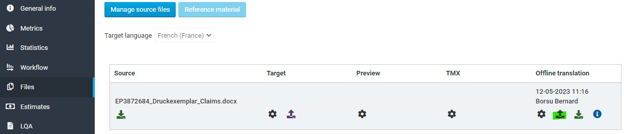 Return to XTM and upload the translated .xlf file under "Offline translation" using the purple arrow. The translation will now be imported into XTM.
