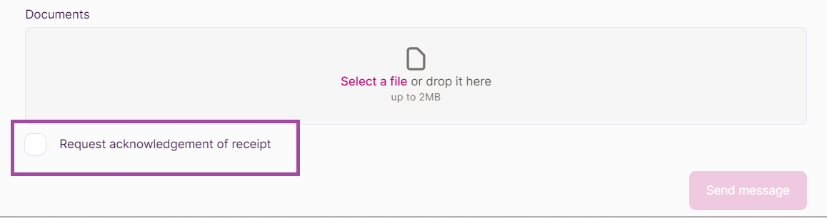 For those highly important messages and for peace of mind, you can request an acknowledgement of receipt from us by ticking the box (see below).