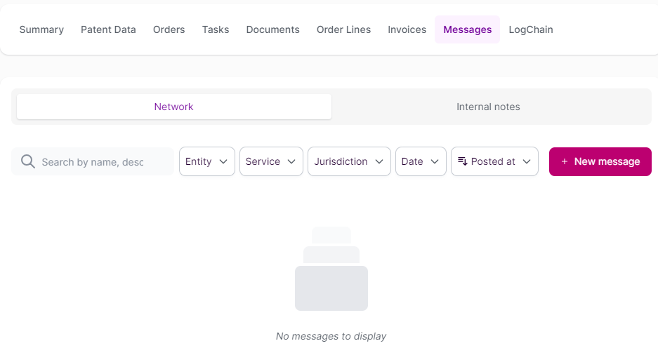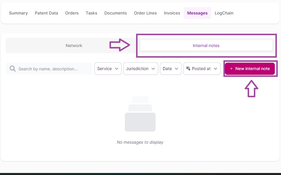 Before instructing your patent, you will only be able to use the "Messages" section on your case to send "Internal" messages (i.e. to your entity). Should you need any help from us before placing an instruction, you can contact the Customer Success team via live chat, email or phone.